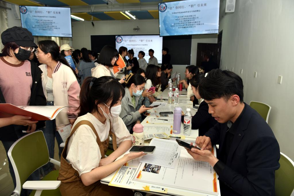 为贯彻落实教育部、省教育厅关于2024届毕业生就业工作的总体部署,深入开展就业育人工作,持续推进毕业生与用人单位精准供需对接,为毕业生高质量就业拓宽渠道,2024年4月19日,太阳集团tyc539macau在第四教学楼举办“‘语’你同行,‘职’引未来”专场招聘会。
