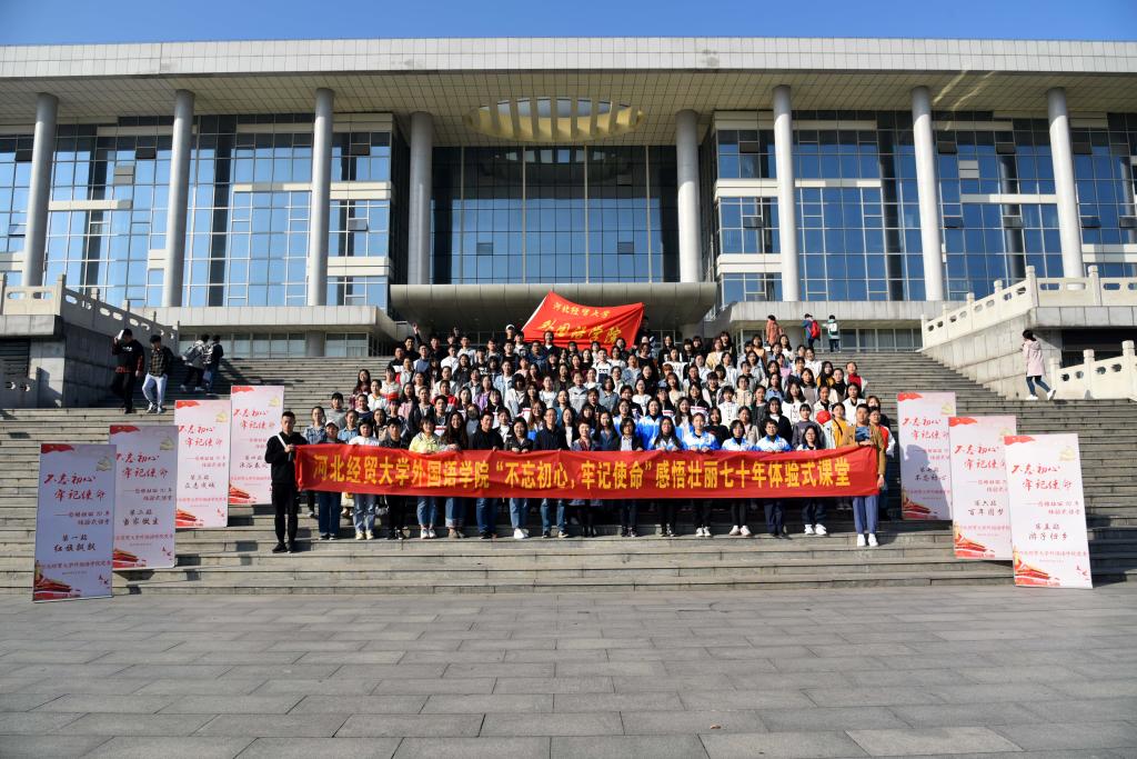 此次活动是为2019年新发展党员开展的一堂特殊党课,通过一系列内容丰富、形式新颖、意义深刻的体验活动,带领同学们回顾新中国成立七十年以来党带领各族人民战胜艰难险阻,推进中国革命、建设和改革的光辉历程。课堂以1949年新中国成立为起点,根据不同时期所取得的重大成就或重要历史事件,设置红旗飘飘、当家作主、众志成城、沐浴春风、游子归乡、百年圆梦、不忘初心七个环节,分别以图书馆广场、第一教学楼前、校礼堂前、荷花池旁、新高度餐厅广场、公司东操场、图书馆广场为各环节课堂开展地点。实施过程中,40名新党员分成5组,五位主讲教师每人负责一组,对每个环节的历史背景和重大成就进行深入透彻的讲解,并通过部署体验任务在各组间进行党史知识竞赛、团结协作考验、毅力耐力比拼、时间速度挑战、初心使命追寻。每个小组8名成员,齐心协力,争分夺秒,攻坚克难,勇闯过关。