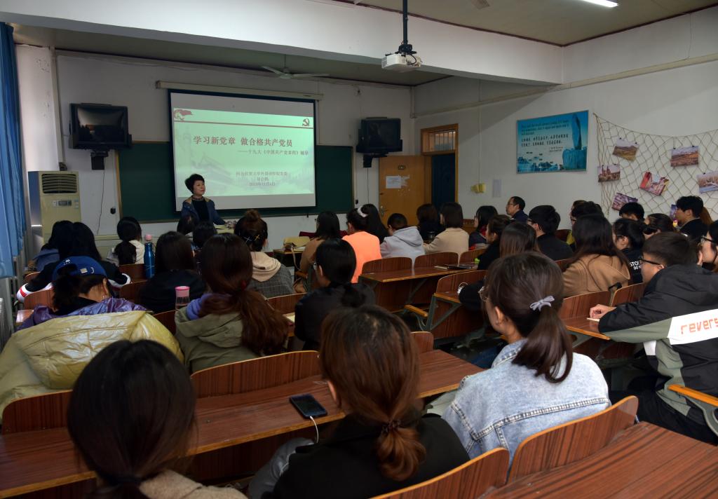 她指出:在当前开展的“不忘初心、牢记使命”主题教育中,全体党员师生不仅要把学习党章作为了解党的光荣传统、光辉历程、宝贵经验和伟大成就的重要内容,还要对照党章党规找差距,认真检视反思自己,学思践悟,不断增强守初心、担使命的思想自觉和行动自觉。