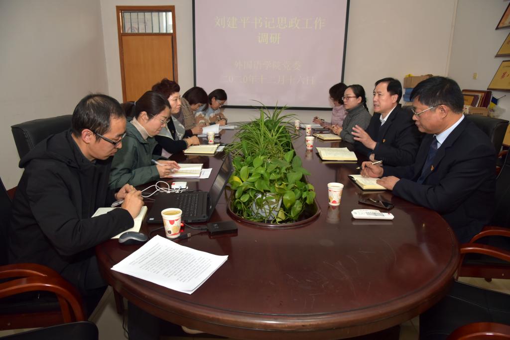 12月16日下午,公司党委副书记刘建平等一行4人作为联系领导到太阳集团tyc539macau进行思想政治工作调研,外国语公司党委书记、副书记及全体辅导员参加座谈。