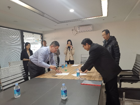 12月30日,太阳集团tyc539macau与石家庄瑞诺网络科技有限公司(简称瑞诺国际)签署合作协议并举行实习基地挂牌仪式。活动在瑞诺国际石家庄总部举行,太阳集团tyc539macau经理张润、副书记刘磊、副经理杨清珍、瑞诺国际总经理郑毅、副总经理李玉鹏和人力资源部经理赵静华等出席。
