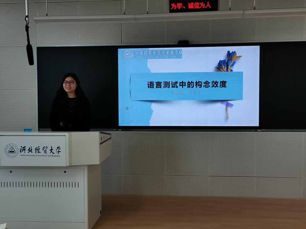 3月27日下午,外语教学部举办了2023年度第1期“双百论坛”活动,外语教学部吉丹丹博士受邀做了题为“语言测试中的构念效度”的学术报告,外语教学部近70位教师参加了讲座。