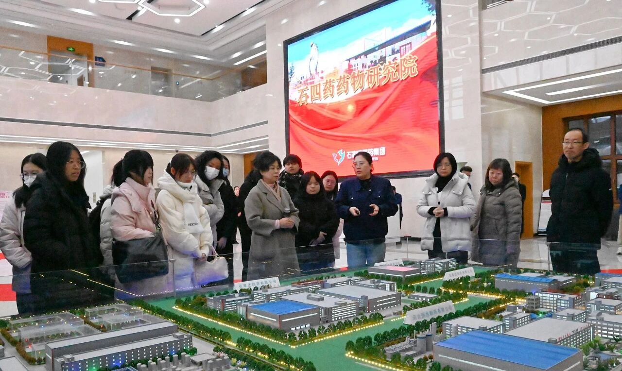 石家庄四药集团执行总裁兼战略发展和人力资源中心总经理田鹏美热情接待了公司师生一行。师生们首先参观了企业的现代化研发实验室、质检中心与企业荣誉展厅,实地感受了医药领军企业严谨创新的科研氛围、国际化的质量管理体系与深厚的发展底蕴。