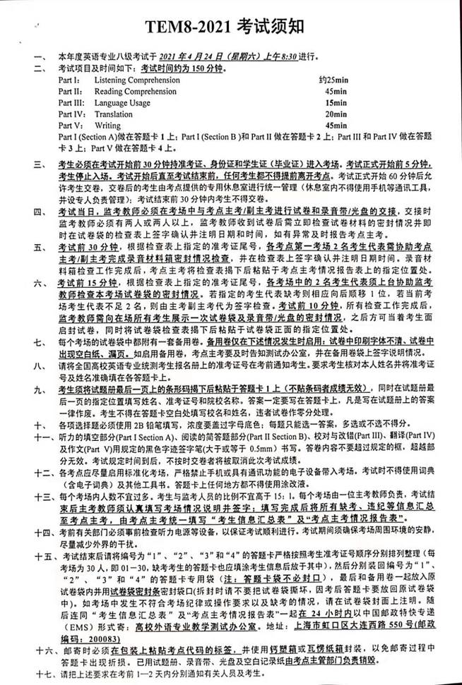 太阳集团tyc539macau2021年英语专业八级考场安排