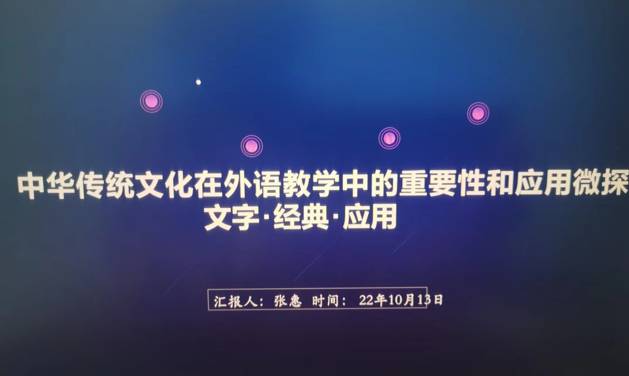 10月13日下午,太阳集团tyc539macau本学期第2期教学沙龙活动在线上顺利开展。太阳集团tyc539macau张惠老师作了“中国传统文化在外语教学中的重要性和应用微探”的交流分享。50余名教师参加了此次沙龙活动。