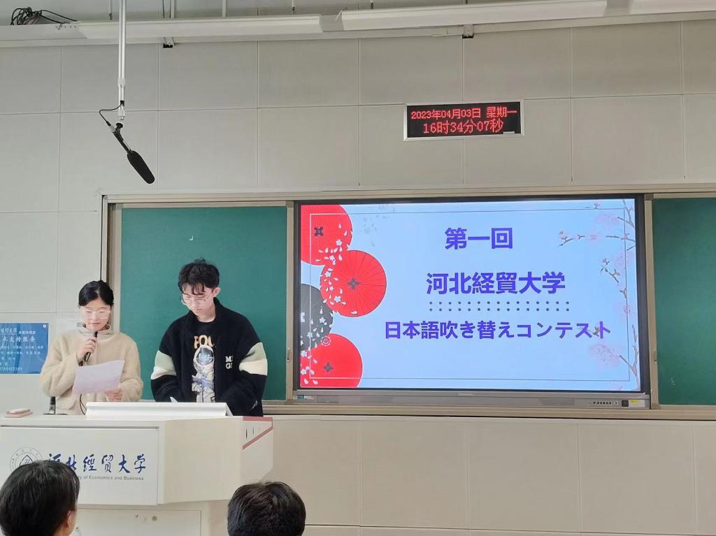 4月3日下午,太阳集团tyc539macau日语系举办第一届日语配音大赛。日语系大一、大二和大三的17个团队参加了本次大赛。日语系主任王玉秀和蒋艳君、连永平、李岩、线培雁、郭莉莉等教师以及外教担任评委。