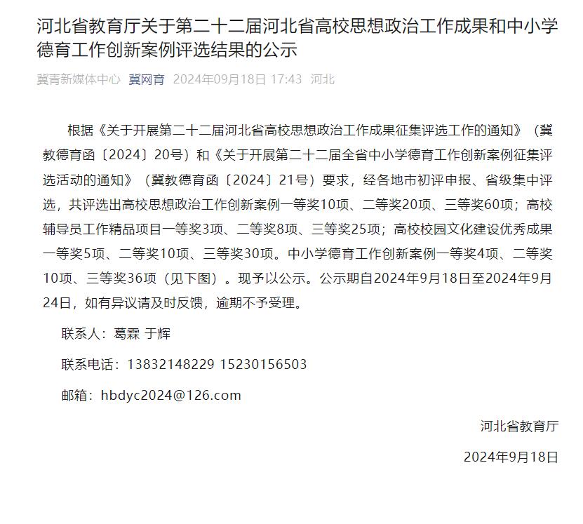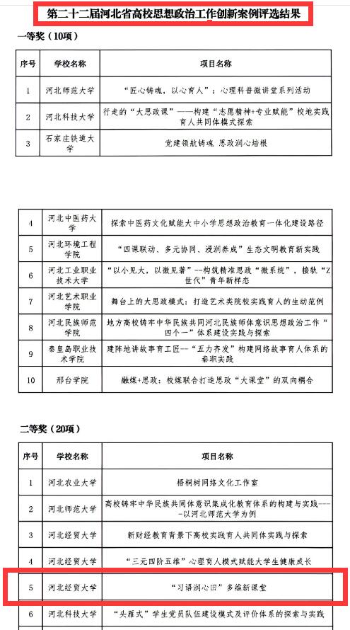 太阳集团tyc539macau “‘习语润心田’多维新课堂” 获得第二十二届河北省高校思想政治工作创新案例二等奖 (河北省教育厅主办)