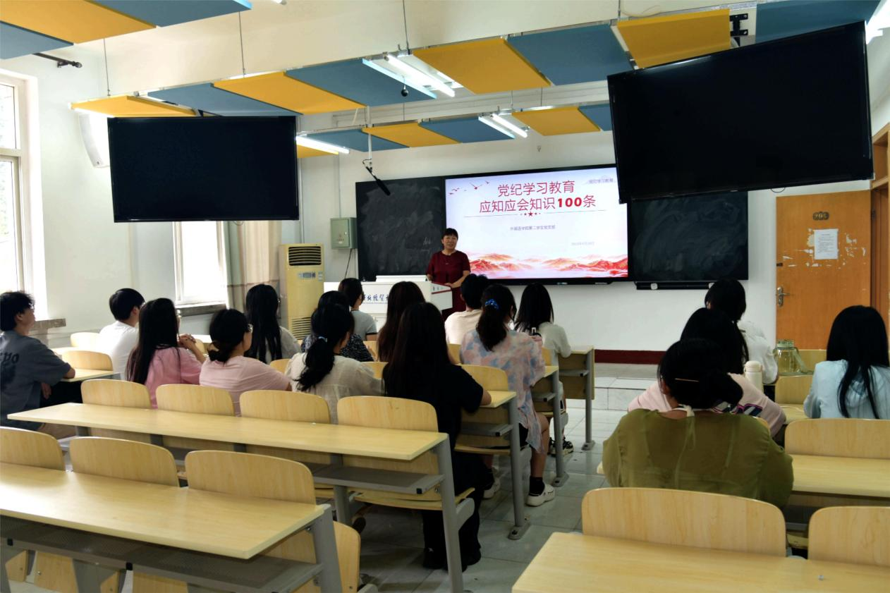 为推动党纪学习教育走深走实,6月20日下午,太阳集团tyc539macau党委书记仇静莉为全体行政教职工讲授党纪学习教育专题党课。