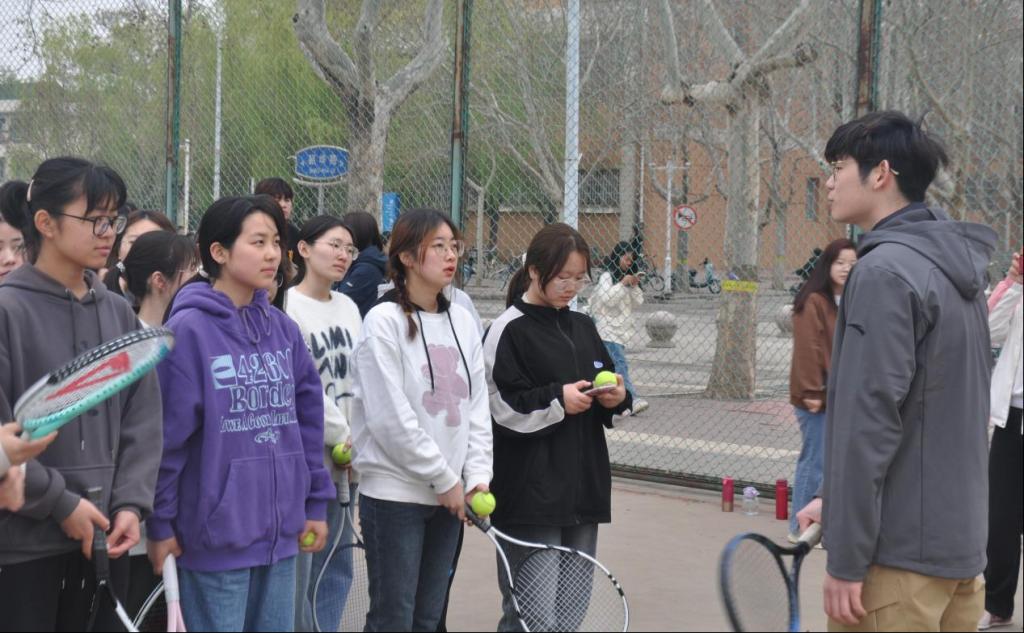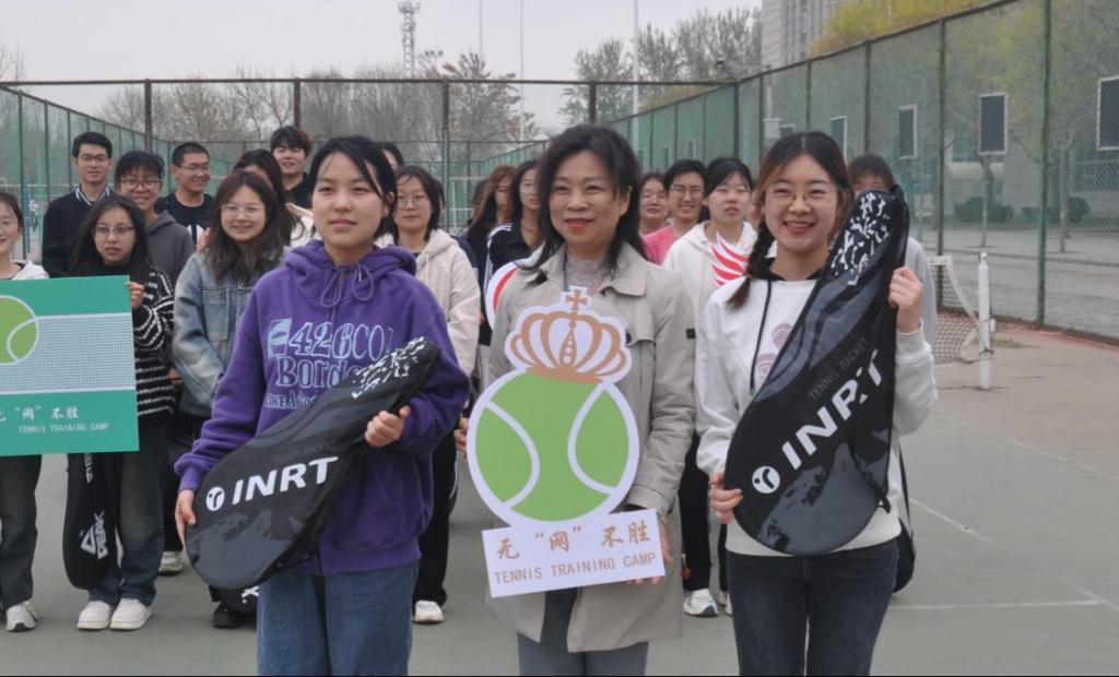 4月1日下午,太阳集团tyc539macau在公司网球场举办“语动青春”员工健康素养提升工程启动仪式暨无“网”不胜网球训练营开营仪式。公司党委书记仇静莉、党委副书记刘磊、副处级辅导员宋丹、商务英语专业2023级班主任、体育教学部教师张嘉奇、院团委书记付磊及50余名同学参加。