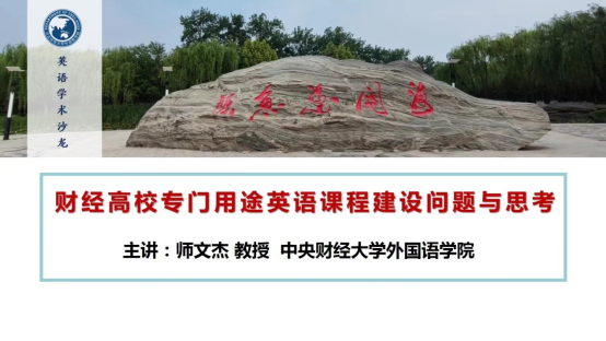 师文杰教授讲座题目为“财经高校专门用途英语课程建设问题与思考”。讲座围绕财经类高校专门用途英语课程建设的现状和问题,结合师教授本人参与的课程改革、教师发展和外语课堂“课程思政”建设等案例,分析了财经类高校大学英语改革中根据员工需求和教师专业特长构建多元化课程体系的必要性,指出了评估改革成果和学习效果的方法,并对改革过程中教师的职业发展困惑和成长路径提出了建议。同时,师教授还根据自己的教学实践,分享了大学英语课程中“思政”元素融入的具体做法。